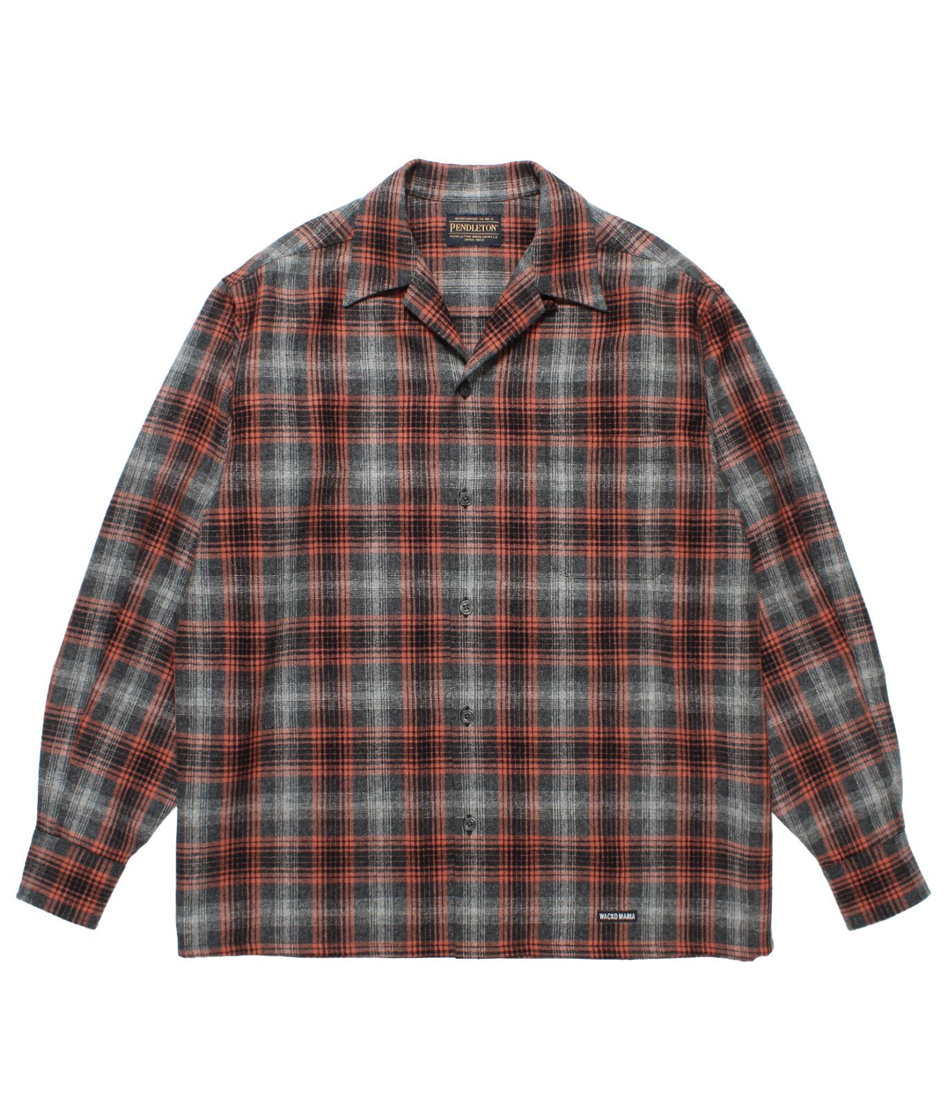 WACKO MARIA (PENDLETON / WOOL OMBRE CHECK OPEN COLLAR SHIRT L/S TYPE-2) GRAY-ORANGE [25FW-WMS-PE02]