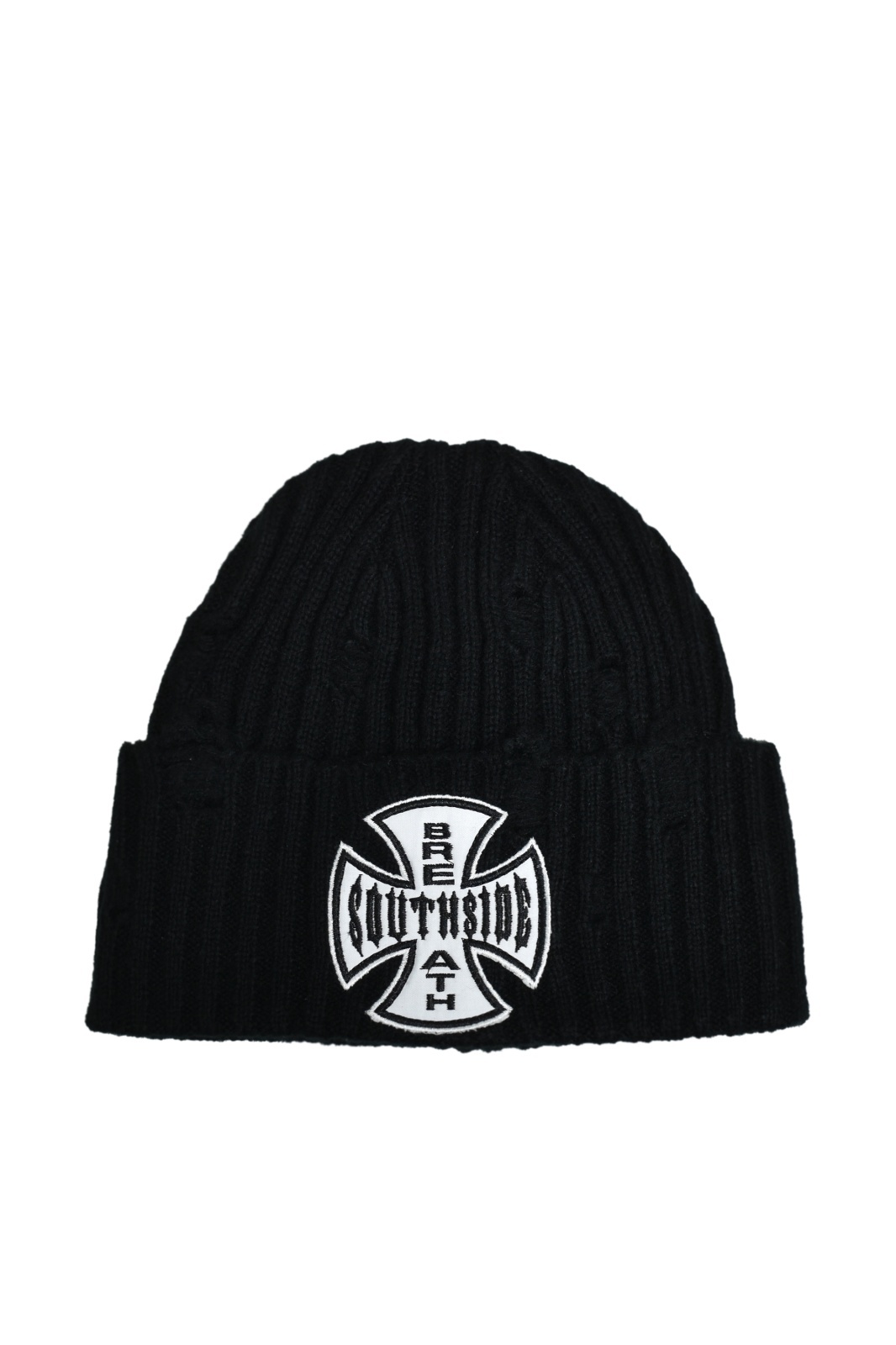 BREATH (SOUTHSIDE CROSS DAMAGE RIB BEANIE) BLACK