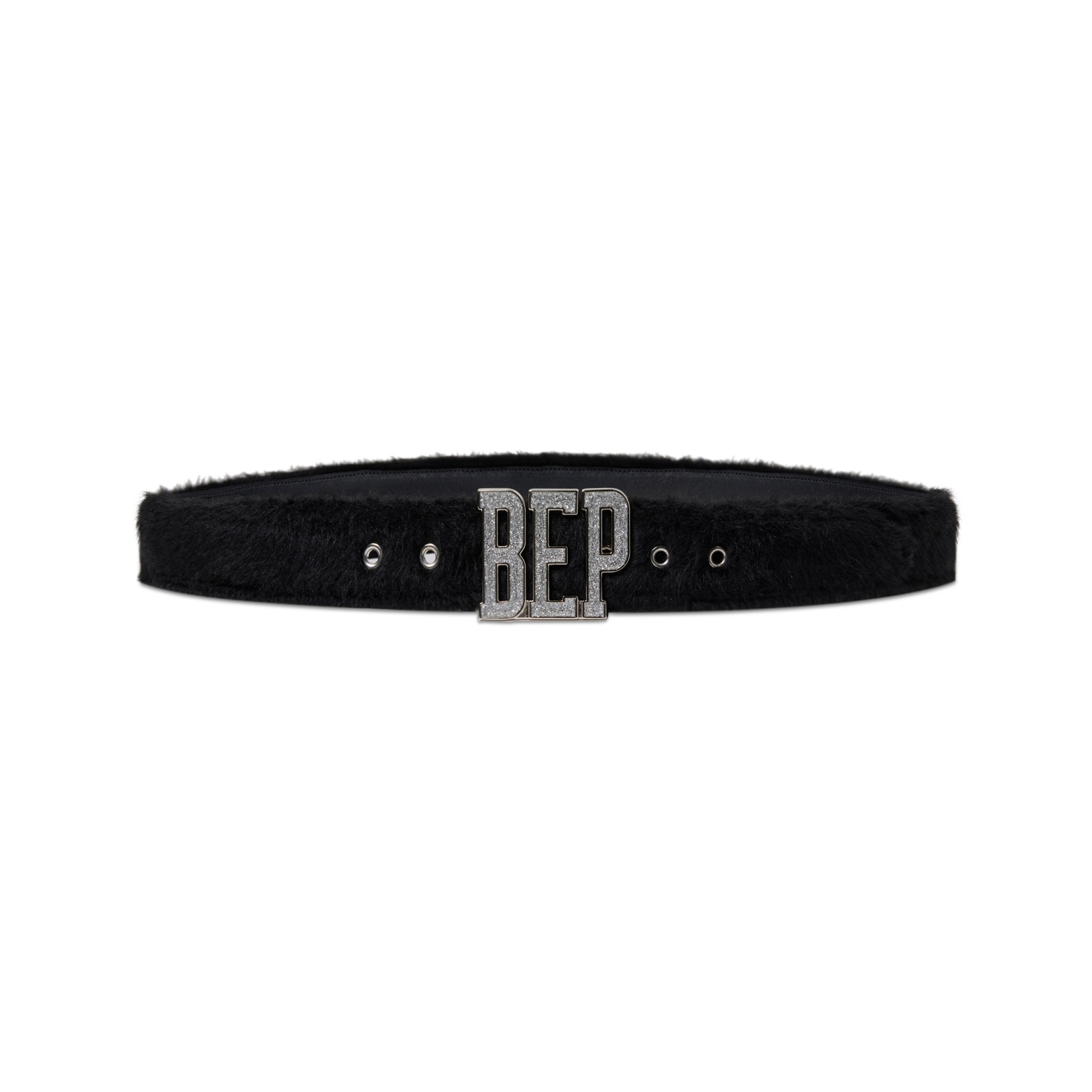 BLACK EYE PATCH (GLITTERED LETTERS FAUX FUR BELT) BLACK [BEPFW25AC64]