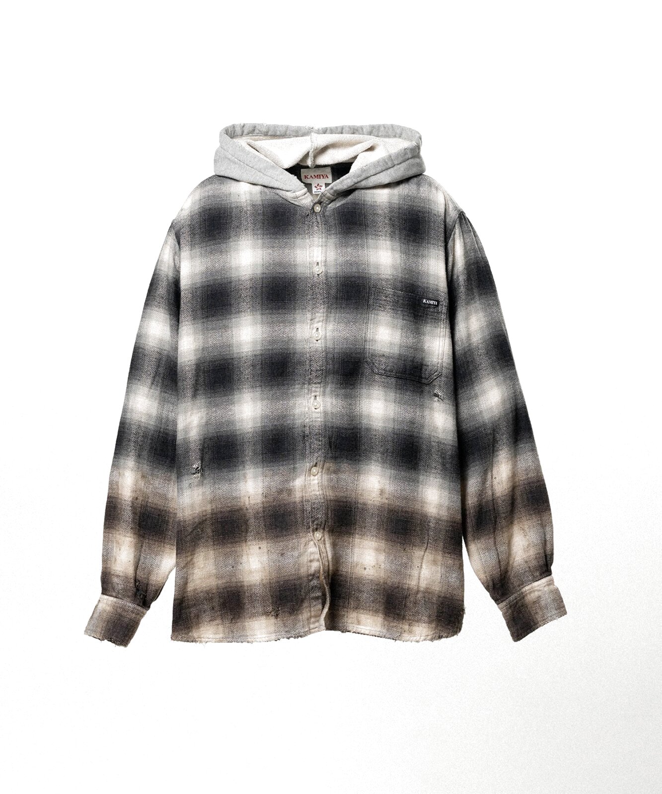 KAMIYA (Distressed Hooded Checked Shirt) BLACK [G16SH051]
