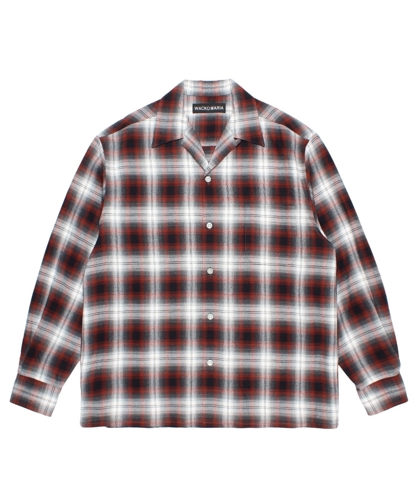WACKO MARIA (OMBRE CHECK OPEN COLLAR SHIRT L/S TYPE-1) BROWN