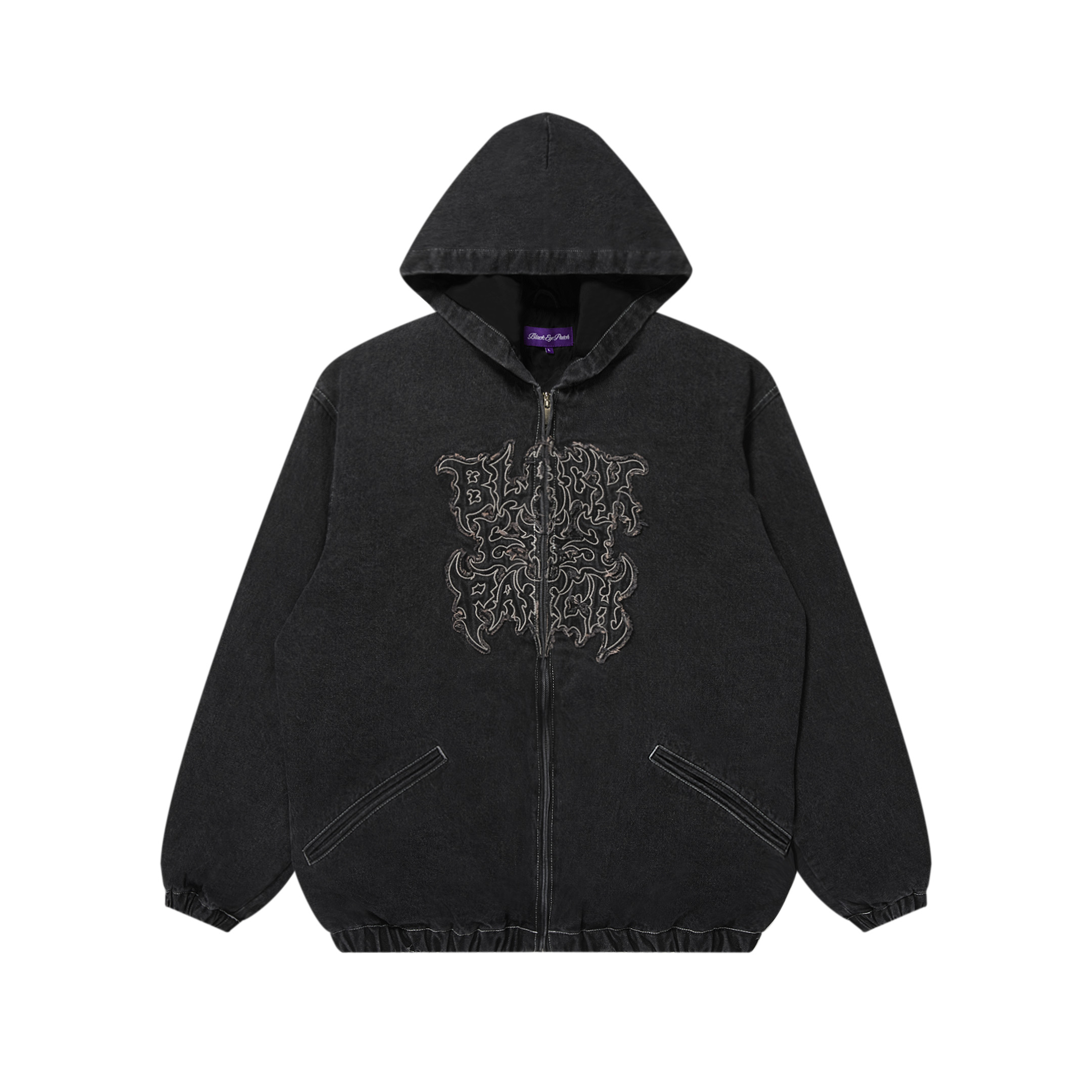 BLACK EYE PATCH (METAL LOGO HOODED DENIM JACKET) BLACK