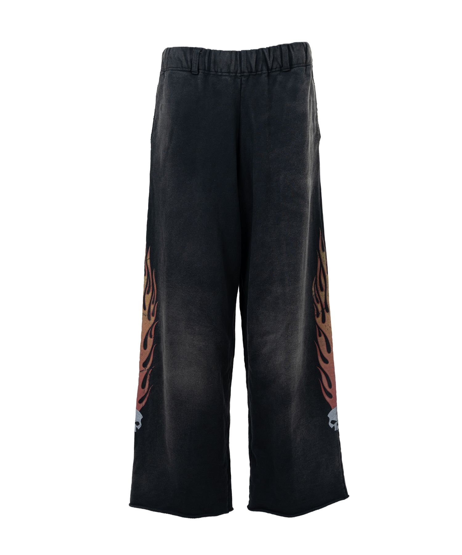 KAMIYA ("Skull Flame" Distressed Sweat Pants) BLACK