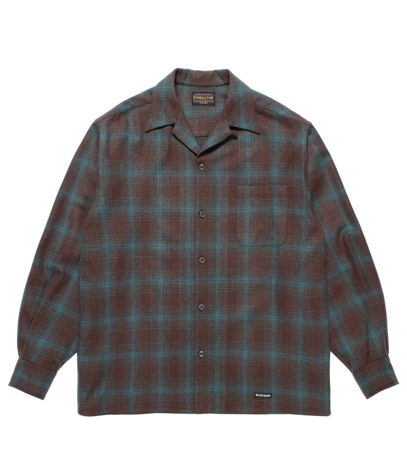 WACKO MARIA (PENDLETON / WOOL OMBRE CHECK OPEN COLLAR SHIRT L/S TYPE-3) BROWN-BLUE [25FW-WMS-PE03]