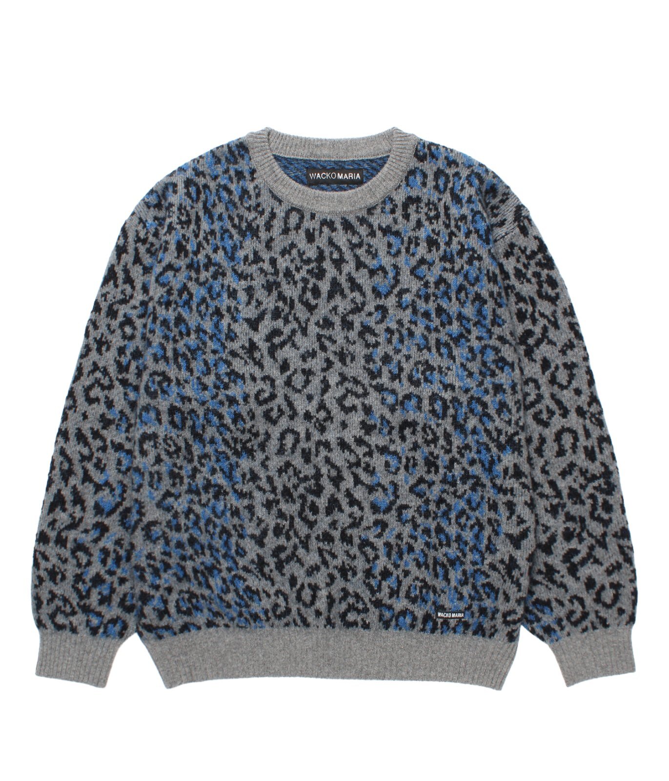 WACKO MARIA (LEOPARD MOHAIR CREW NECK SWEATER) GRAY [25FW-WMK-KN07]