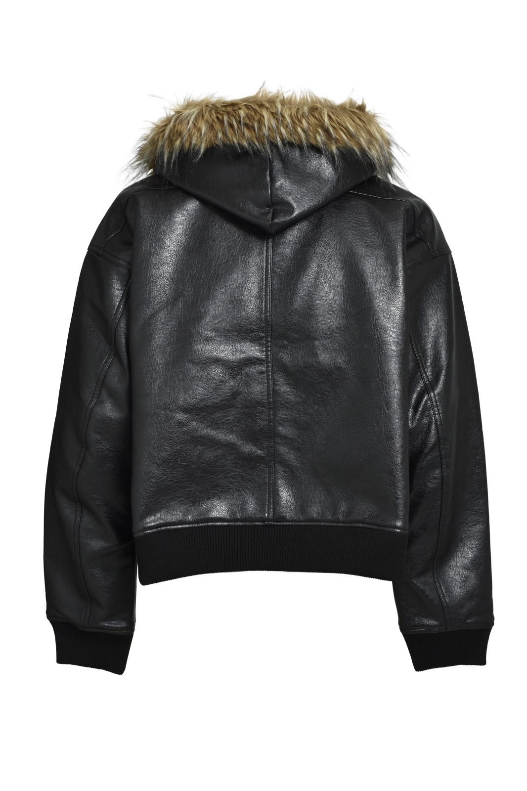 BREATH (FAUX LEATHER FUR HOODED JACKET) BLACK