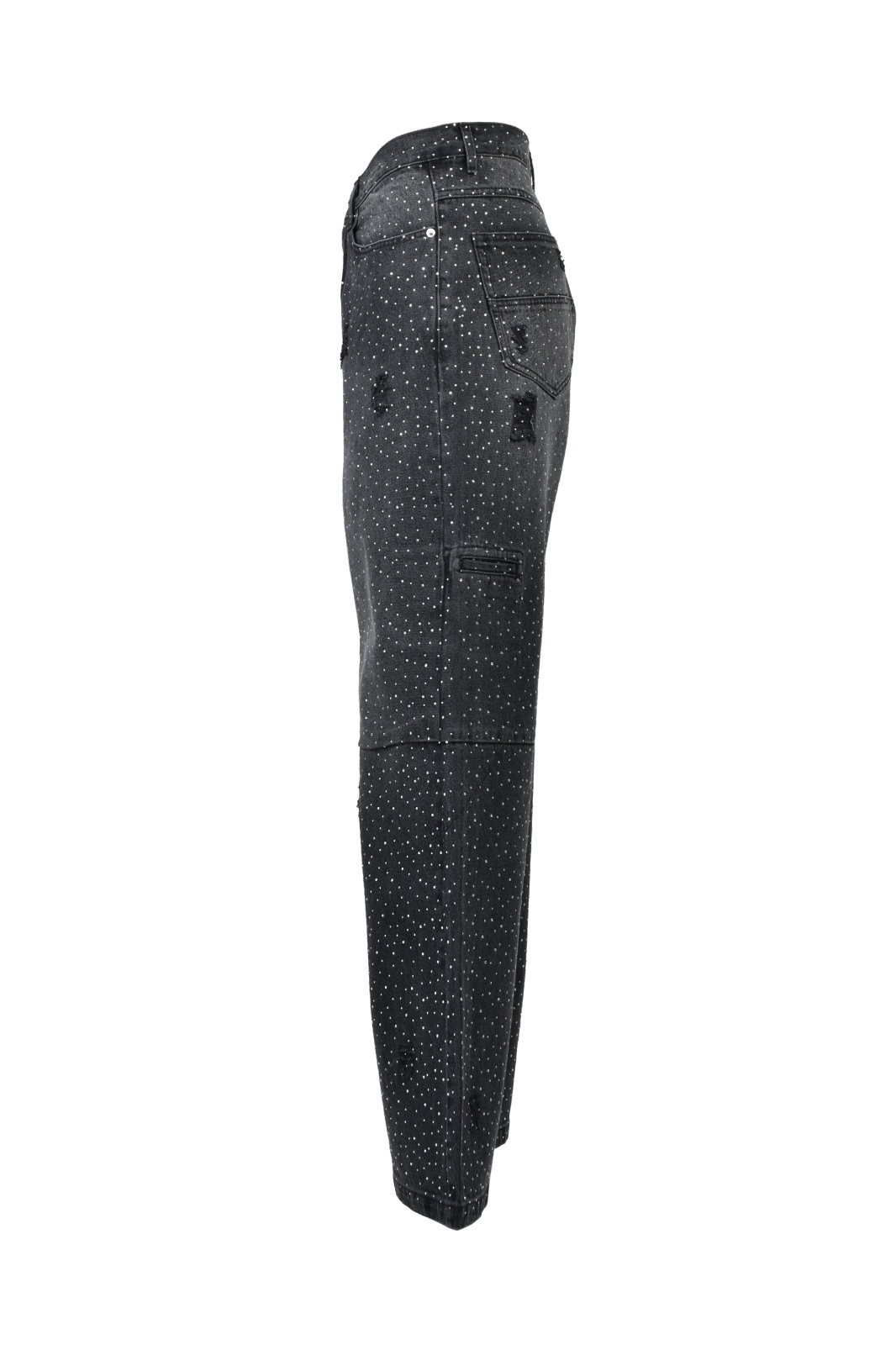 BREATH (SCRIPT LOGO FADE RHINESTONE DENIM PANTS) BLACK