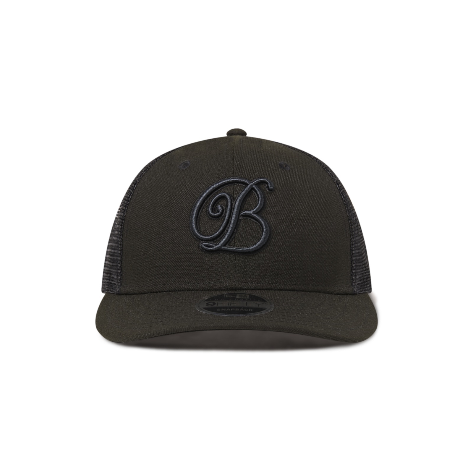 フロントに "B" エンブレム、バックにスクリプトタイプのブランドネームの刺繍が入る。