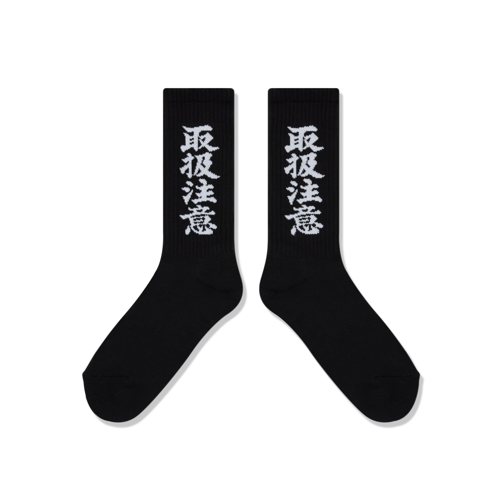 定番の "取扱注意" が織り込まれたソックス。